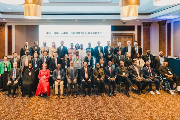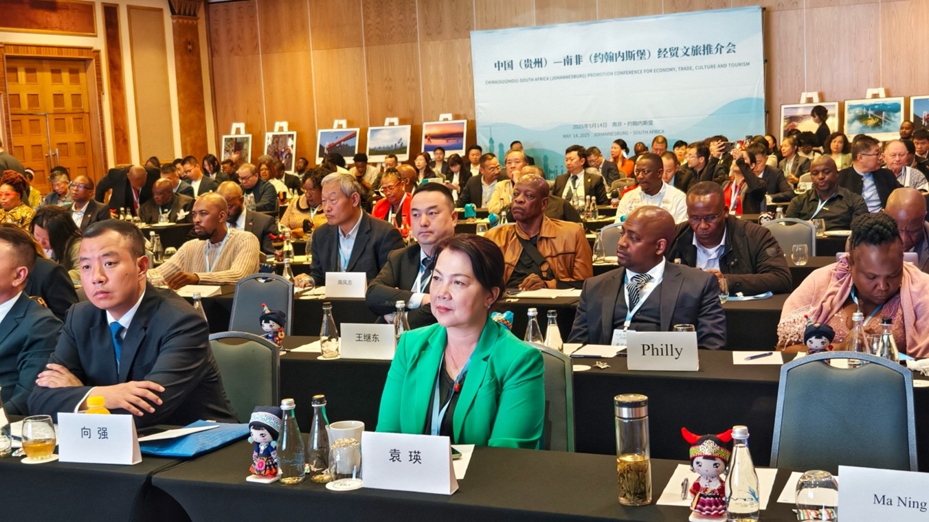 人平易近网约翰内斯堡5月17日电(刘畅) 14日,中国(贵州)—南非(约翰内斯堡)经贸文旅推介会正在约翰内斯堡成功举办。贵州省常委会副从任,省总工会桑维亮、中国驻约翰内斯堡总潘庆江、南非豪登省议会莫罗克妮·莫苏皮耶、南非副总统出格经济参谋加迪贾·布朗、南非前驻华大使谢胜文等出席会议并致辞。会议由贵州省外事侨务委员会副从任委员马宁掌管。