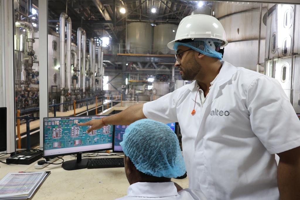 2024年7月24日,正在毛里求斯东部弗拉克区一家糖厂,工人正在车间内监测蔗糖的出产。记者凌馨摄。