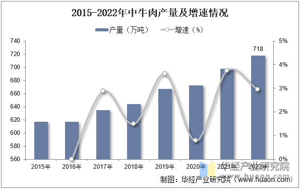 跟着经济的快速增加,居平易近收入程度不竭提高,人们越来越逃求质量高的糊口。而饮食做为糊口中的主要部门,也正在发生着变化。人们起头认识抵家庭饮食健康的环节所正在,仅仅是猪肉产物不再能满脚泛博社会消费者的需要,肉类的选择逐步丰硕多样。此中,低脂肪高卵白的牛肉更是遭到了大大都消费者的青睐,牛肉需求的不竭添加鞭策了牛肉行业的敏捷成长。据材料显示,2022年我国牛肉产量为718万吨,同比增加2。9%。