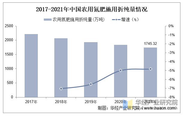 跟着我国农业绿色成长程度持续提高,全国农用氮肥折纯量逐年低走。2021年,全国农用化肥量(折纯量)为5191万吨,已持续6年下降;此中,用氮肥折纯量为1745。32万吨,同比下降4。83%。