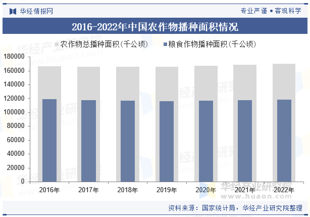 2022年,、国务院高度注沉粮食出产,各地域各部分严酷落实粮食平安党政同责,持续加大对粮食出产的支撑力度,无力降服北方稀有秋汛导致冬小麦晚播、局部发生新冠肺炎疫情和南方持续高温干旱等晦气要素影响。2022年,我国农做物播种面积达到169990。92千公顷,此中粮食做物播种面积达118332。11千公顷,占比69。61%。